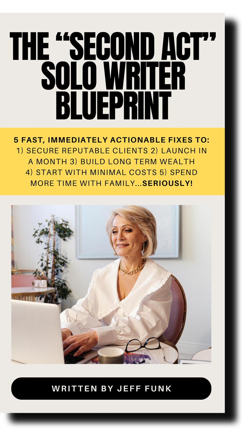 Within the next minute or two, you're going to get an email from me Jeff Funk.This email contains instructions to get started with The “Second-Act” Solo Writer Blueprint, so be sure to check it out!But if you have any questions, don't hesitate to hit reply and let me know—I'll be happy to help! :-)Now go and check your inbox!